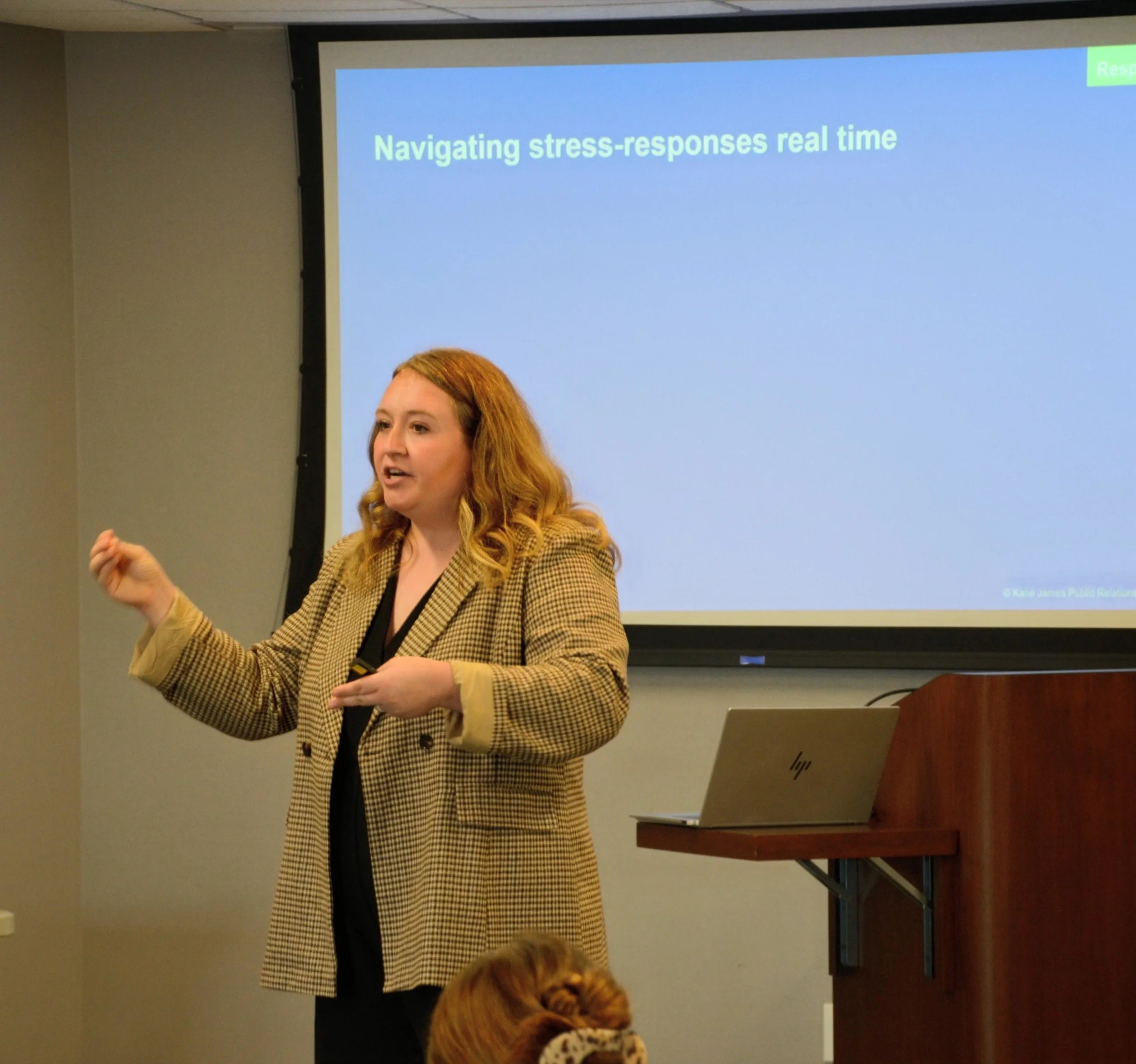 The Pressure-Proof Method™ is designed to strengthen performance in professional environments. It focuses on practical stress-regulation tools for high-stakes situations such as presentations, leadership visibility and public engagement.